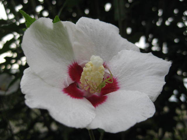 ムクゲ よ~く見たら、赤い部分に緑の物体が・・・虫さん?