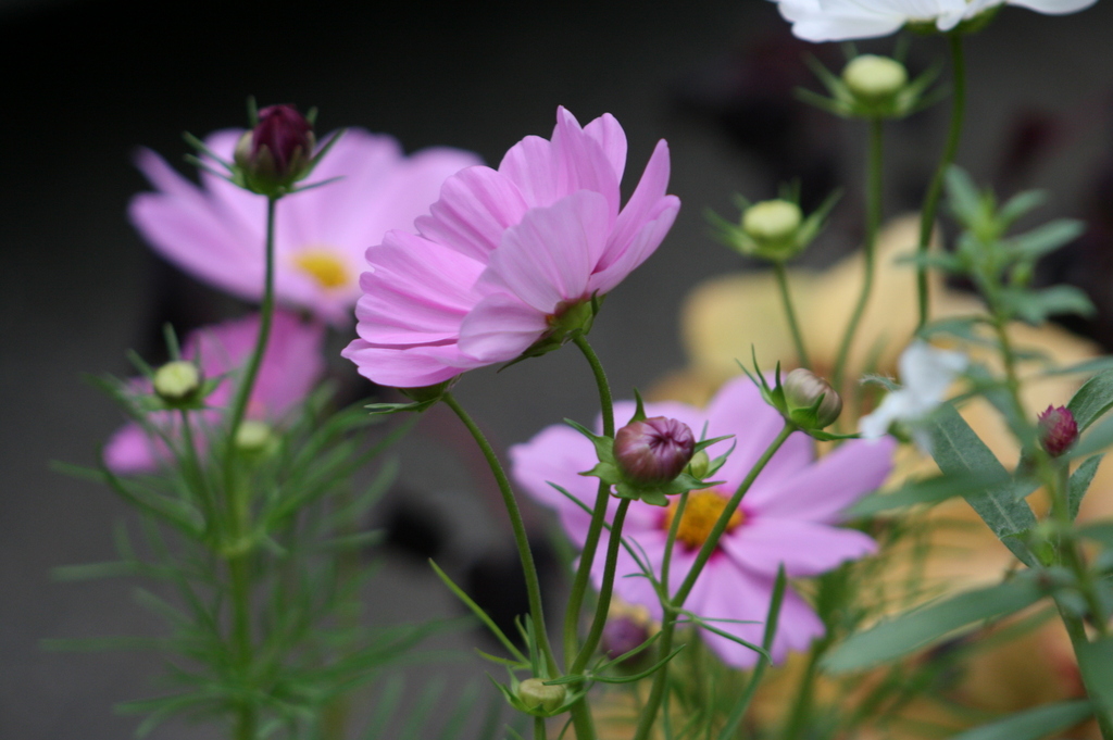 コスモスってよく見ると本当にきれいですね。花びらの一枚一枚、葉の形、完成された植物といってもいいのでは??