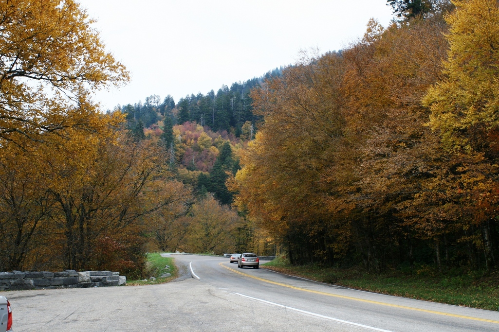 グレート・スモーキー・マウンテン国立公園から一路次の目的地であるガトリングバーグという街へ向かう道路の紅葉。この辺りはほとんどが黄色い紅葉で赤い色は少ないようです。