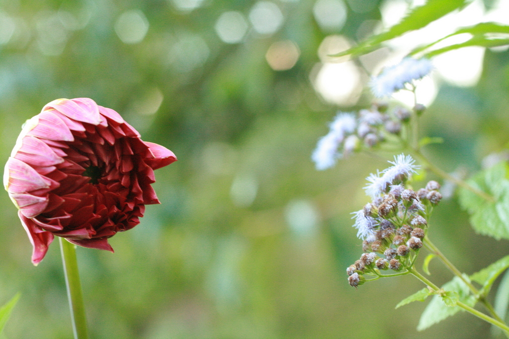 本当にそんな会話が聞こえてきます。赤いダリアをブルーのフジワカバ、とても絵になりますね!