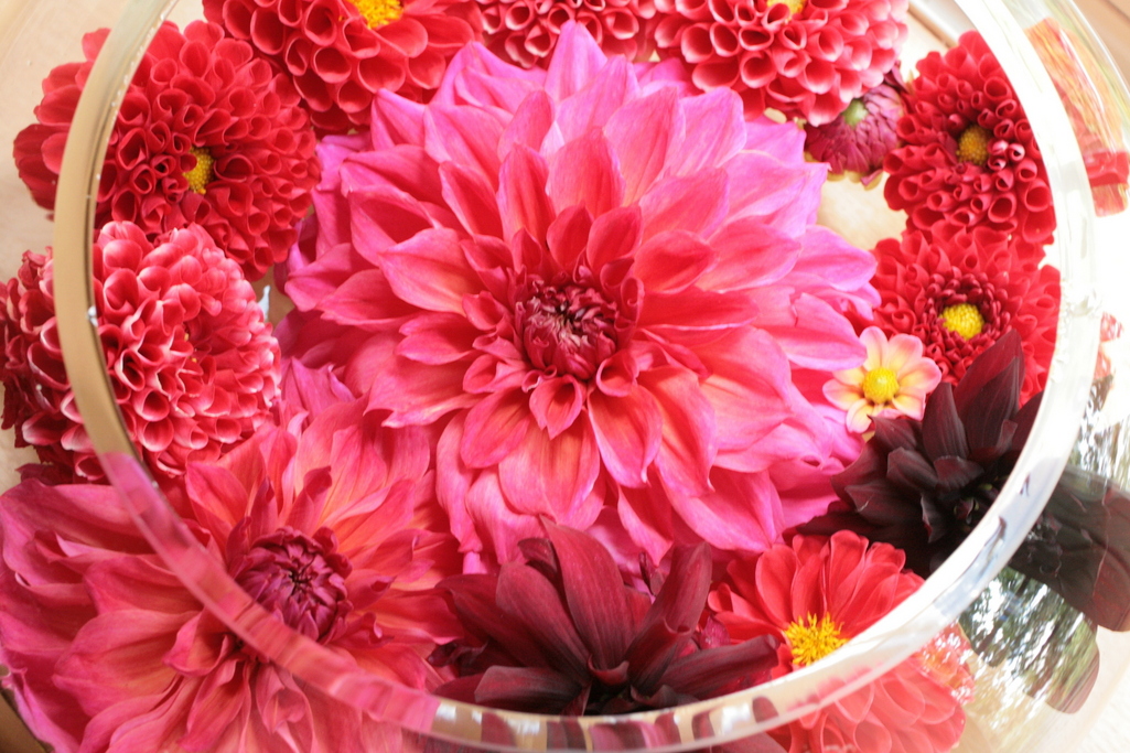 ダリアの色が暖かいですね。