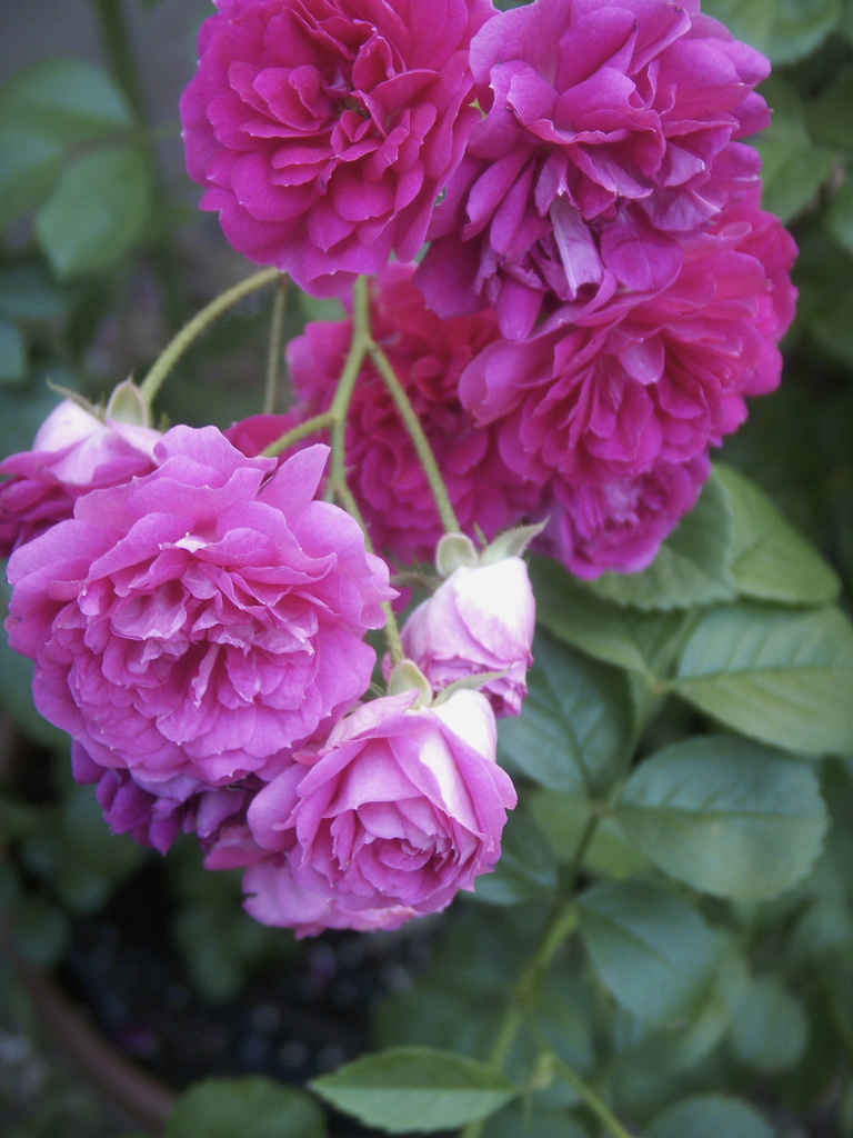 「バレリーナ」という名札のついた挿し木苗を買ったら、バレリーナは咲きませんでした。かわりに2年目からショッキングピンクに近い花が房になって咲きました。たぶんキングだと思います。丈夫!