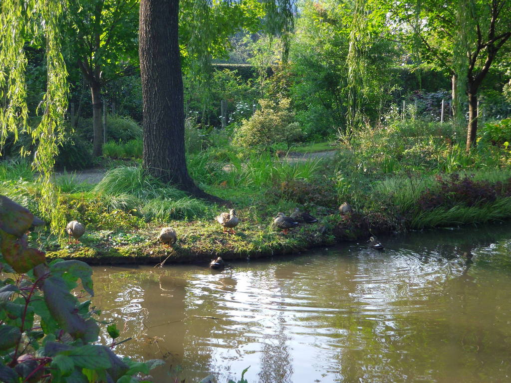 この水辺のコーナーは大きな柳の木があって水辺には真っ白のジャイアント・カラーが植えてありますね。