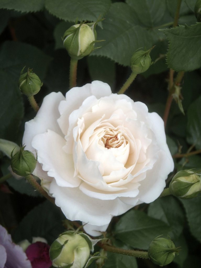 フレンチローズ、デルパールのバラ。最初の1年は鉢植え。もともとショートクライマータイプなので、がんがん伸びて茂って手におえなくなり地植えへ。すると同じバラとは思えないほど豪華に咲いてくれました。このバラが開いていく過程-咲き進む様子はは、私にはほとんど神秘的なほどに思えます。(大げさですが・・・)