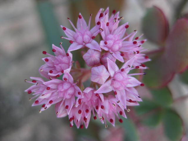 アップにすると 不思議な花ですね。赤いのがしべでしょうか?星型に花びらが開くんですね。(^_^;)綺麗です。