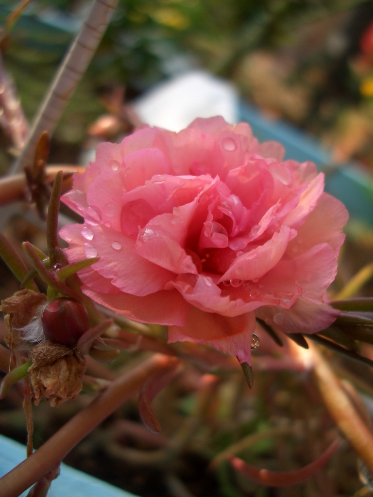 雨の雫がかかった八重の松葉牡丹、綺麗です。まだまだ咲いているんですね。