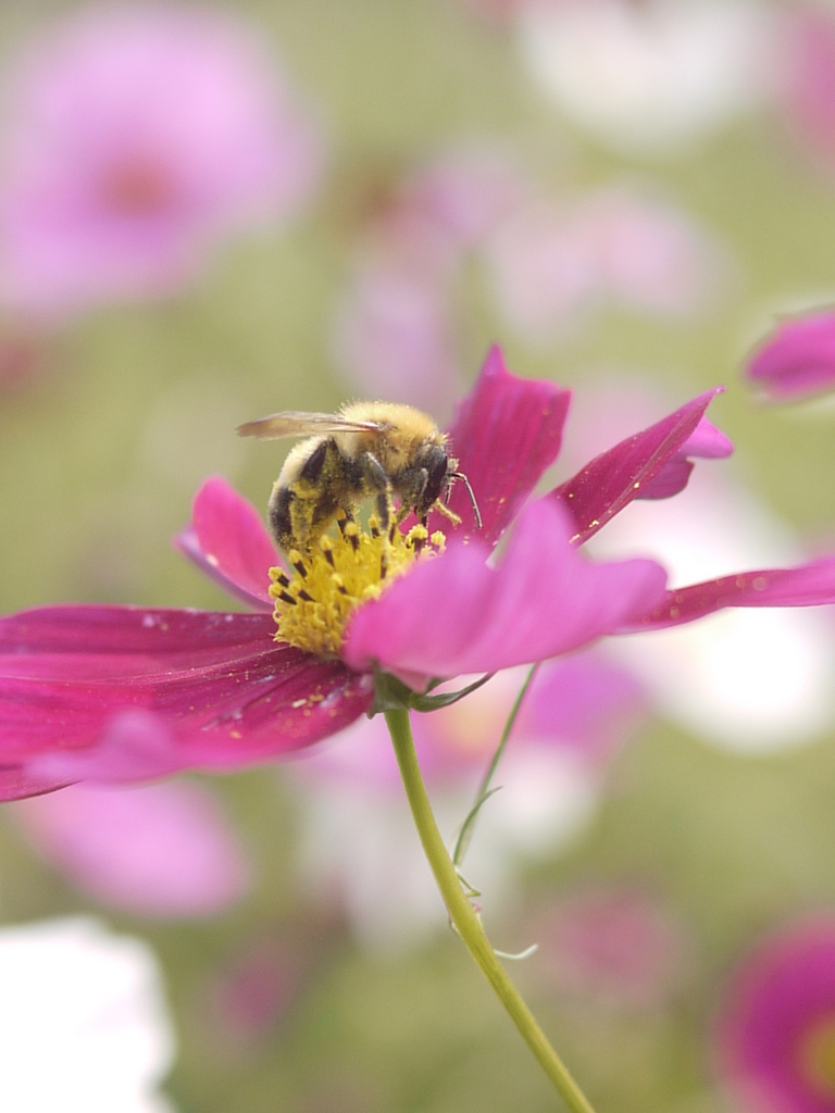 働き蜂クン、花粉まみれで一生懸命頑張っていますね。