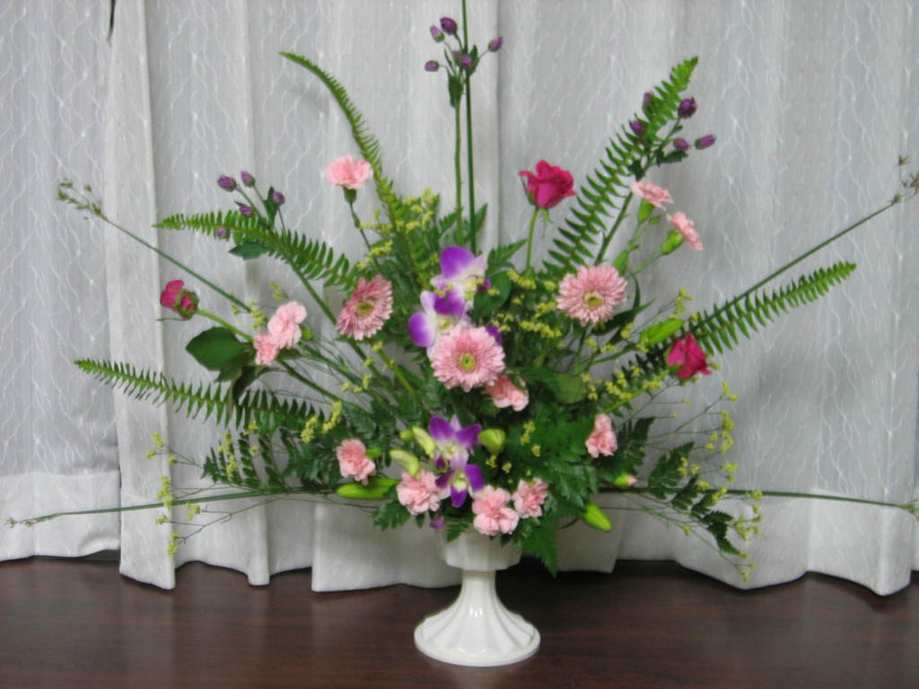 大型作品の完成ですね!上手に形ができましたね^^ お花はいつも花屋さんが選びますか?花屋さんってその時にたくさん入荷しているものをとりとめもなく使いたがるのですが、私的にはこの形の場合は花の色が2色ぐらいの方が形そのものを楽しめて好きです。