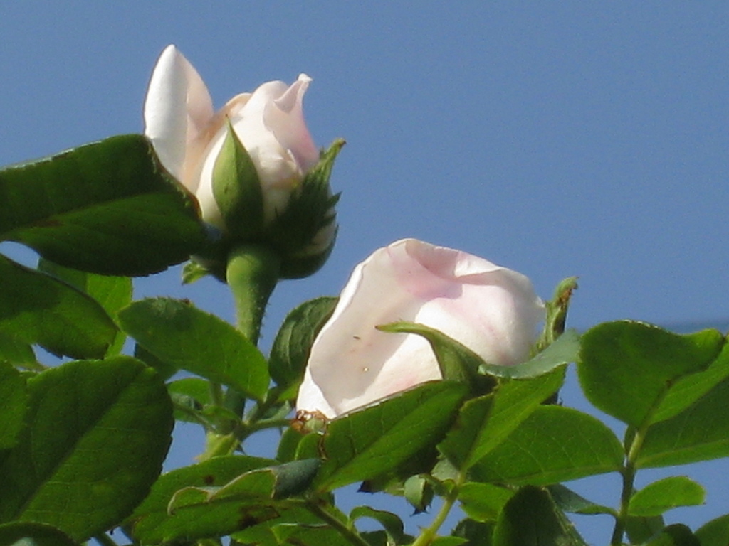 咲き始めはピンクが入っていて、開くとだんだん色が抜けて真っ白になるのですね。白バラで、逆にだんだんピンクに染まってゆくのもありますよね。