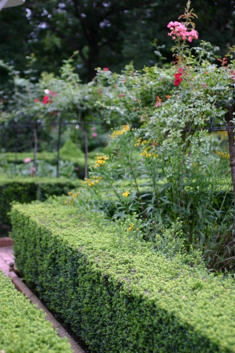 6月上旬に行ったときは、このスタンダード仕立のバラが満開で柘植で囲まれた中にはたくさんのアリュームが咲いていてとってもきれいでした。