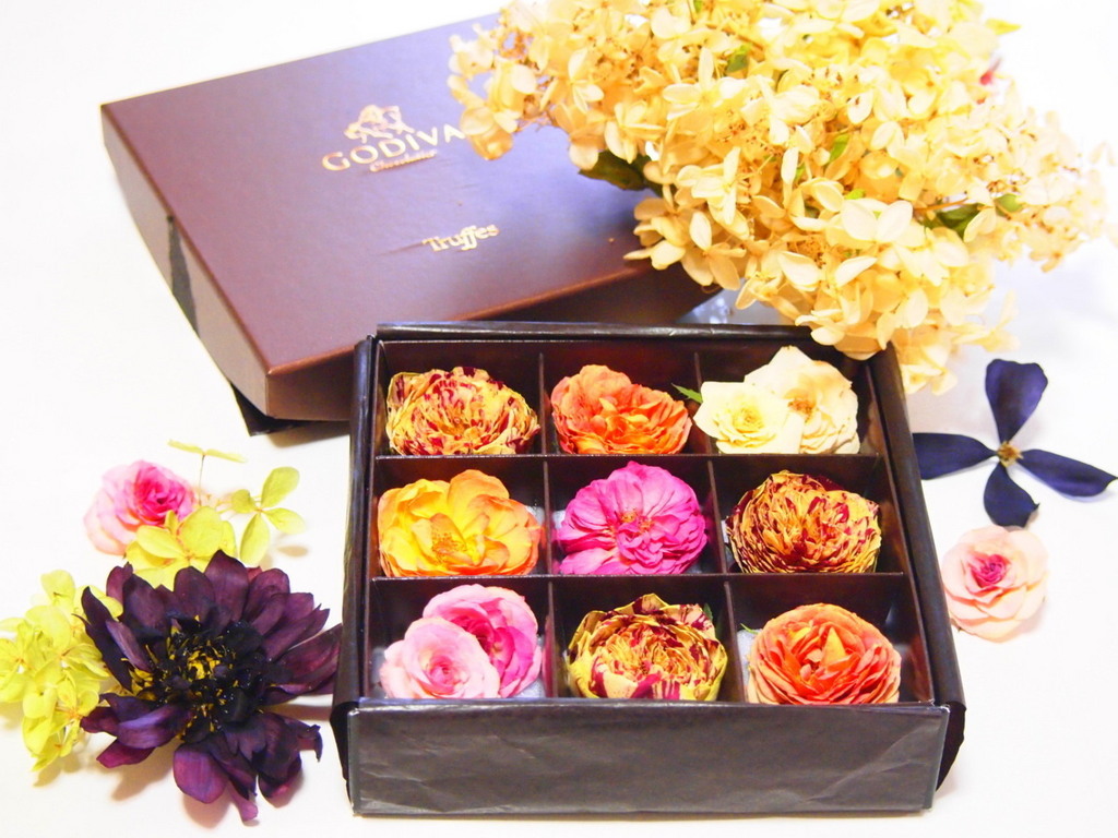 GODIVAの箱を開けたらチョコではなくて、薔薇!!それは嬉しいです!素敵ですね!