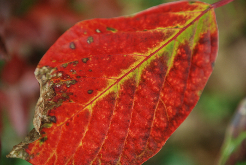 明るい赤ですね!美しい・・・クリスマスを連想させます。この葉っぱ、12月までとっておけたらいいですよね~!