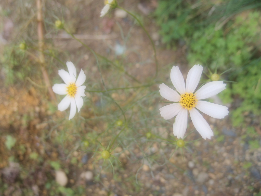 植えたはずも無いコスモスが・・・。ほかりっぱなしのハーブ花壇に咲いていました。(^_^;)種が飛んできたのかな?花はちいさいような気がします。