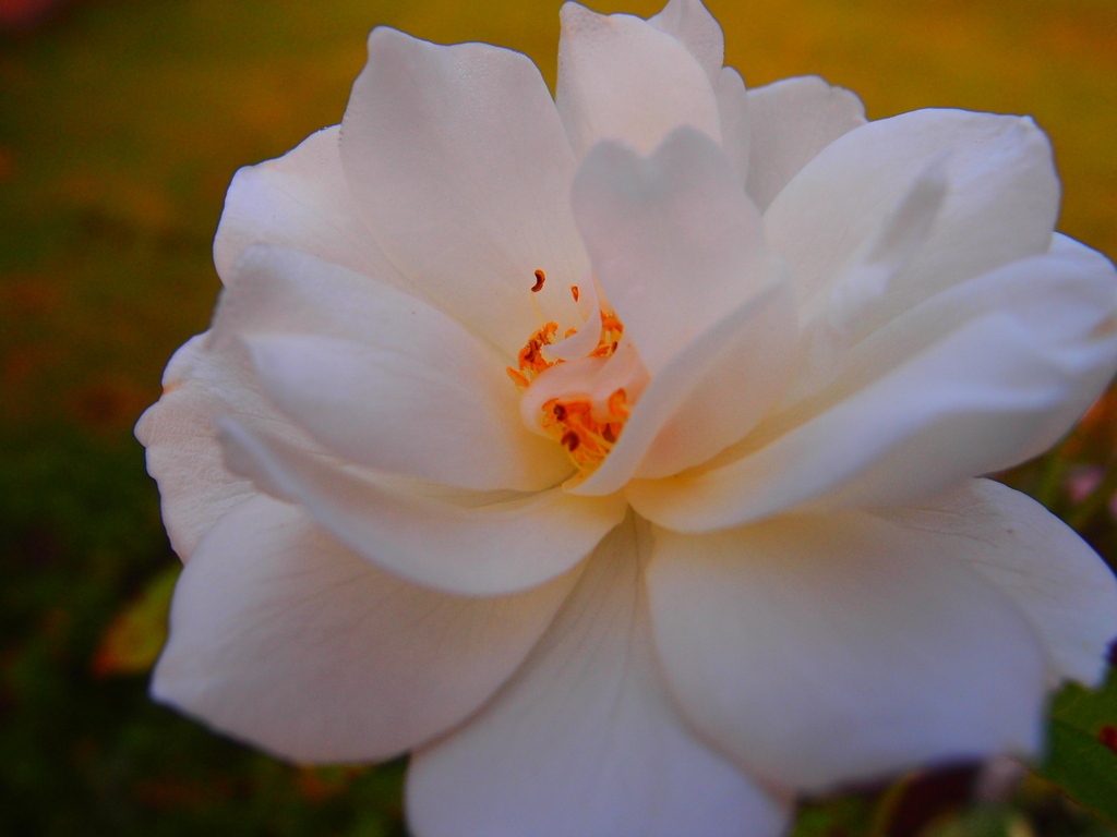 夕暮れ時ですか?オレンジがかって、キレイですね! 我が家には3株ありますが、朝から陽のあたる場所よりも、なぜだか西側の午後から日のあたる場所の株の方がた~くさん咲いています。バラにも場所の好みがあるんですね。