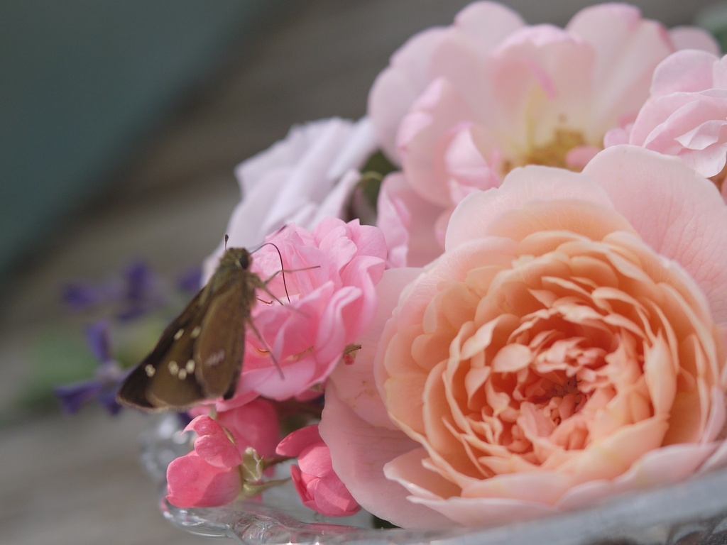 Lizzyさんの優しさに誘われて、いつものセセリチョウが切花にも来てくれたのですね。