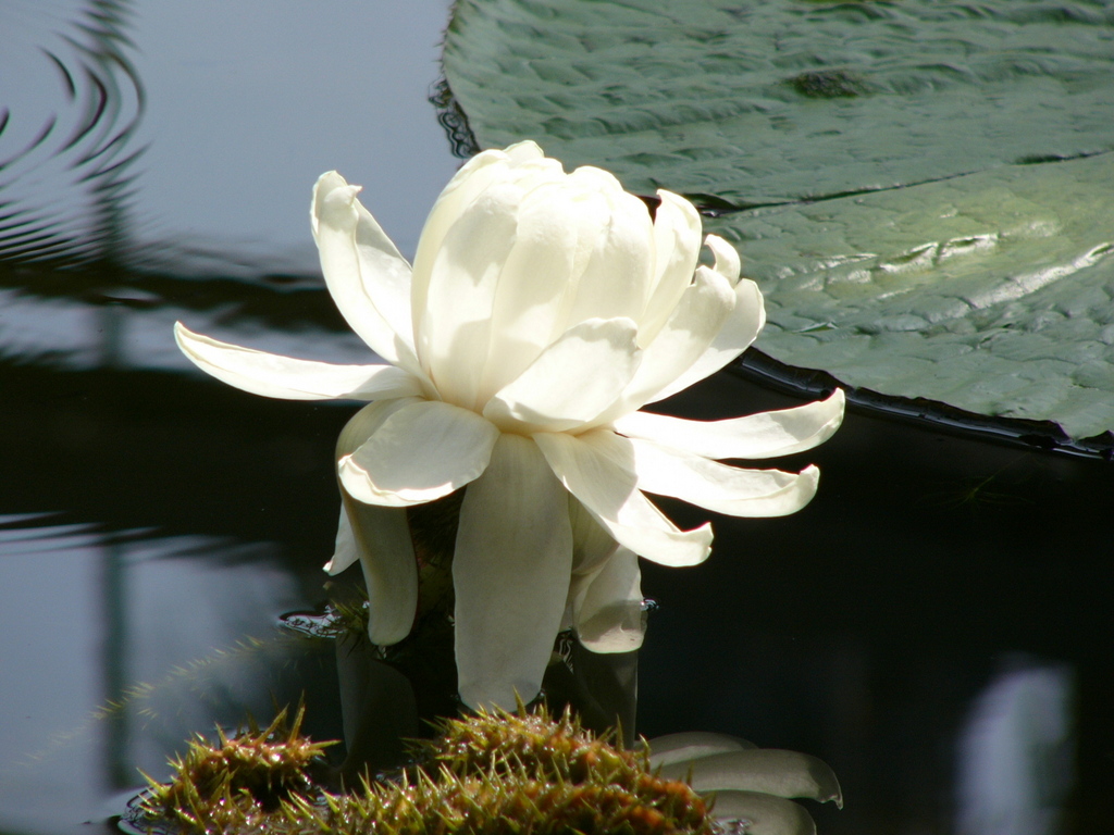 池が黒く見えますね。その上に浮かぶ白いハス。とても美しいと思います!
