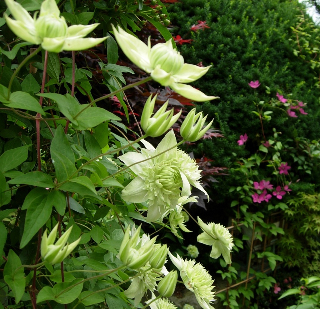 右奥の濃いピンクのコメレイは、キャラの木に絡ませています。