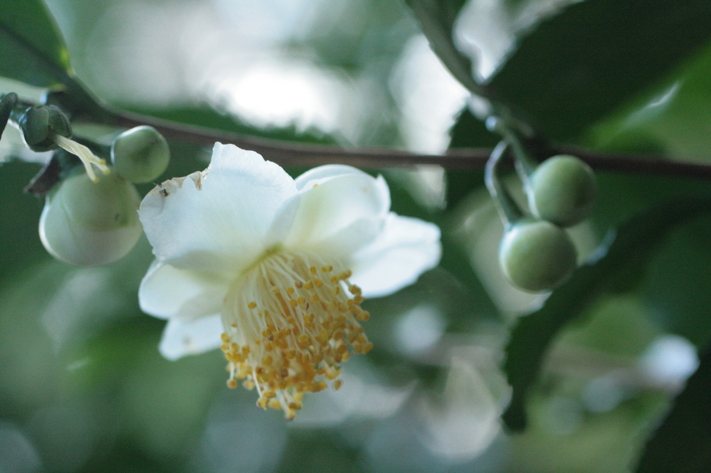 お茶の花ってこんななんですね~!可愛いですね。蕊がたくさん!
