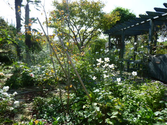秋・冬のすきりした庭も好きです♡ パーゴラのグリーンとシュウメイギクが素敵な庭のポイントですね!