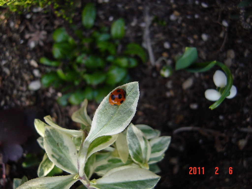 今日、ナナホシテントウを見つけました。今年も沢山アブラムシを食べてね。スノードロップも咲きだしました。