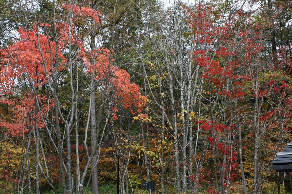 今軽井沢で人気のハルニレテラスの近くの紅葉です。