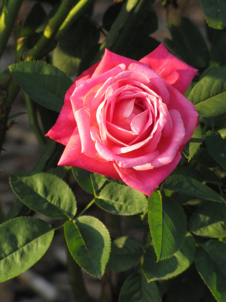 ヒロシマ・マインド。 「よく描かれるバラ」というような花と葉のつき方でした。