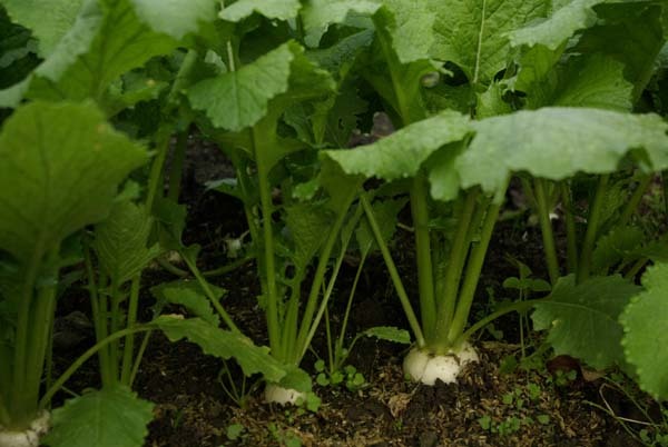 葉に虫食いのあとがないところを見ると、不織布とか使用していますか?おいしそうなカブですね。