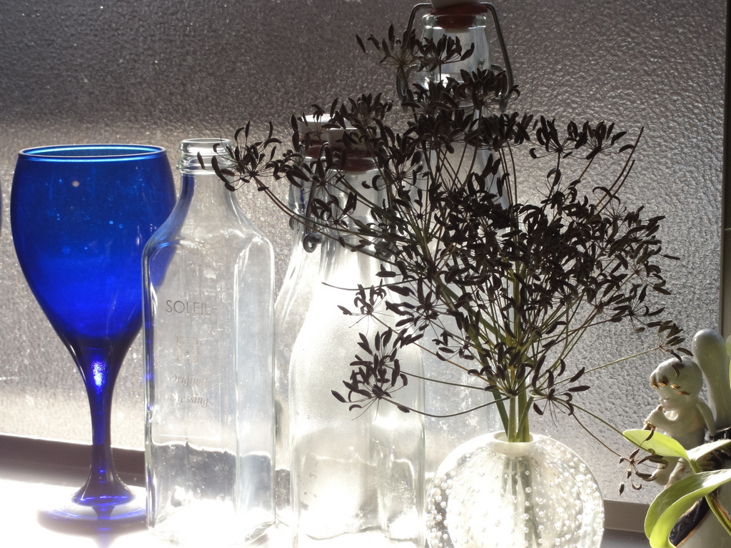 フェンネルの影絵とブルーのグラスが、引き立てあっていますね!