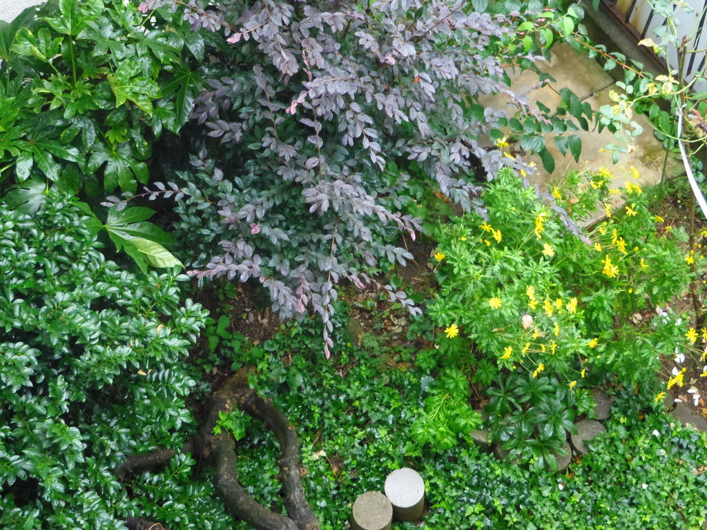 緑のグラデーションが素敵ですね。うちの庭は、花が咲かないと緑一色で変化が無いのですが、こういう工夫も良いですね。