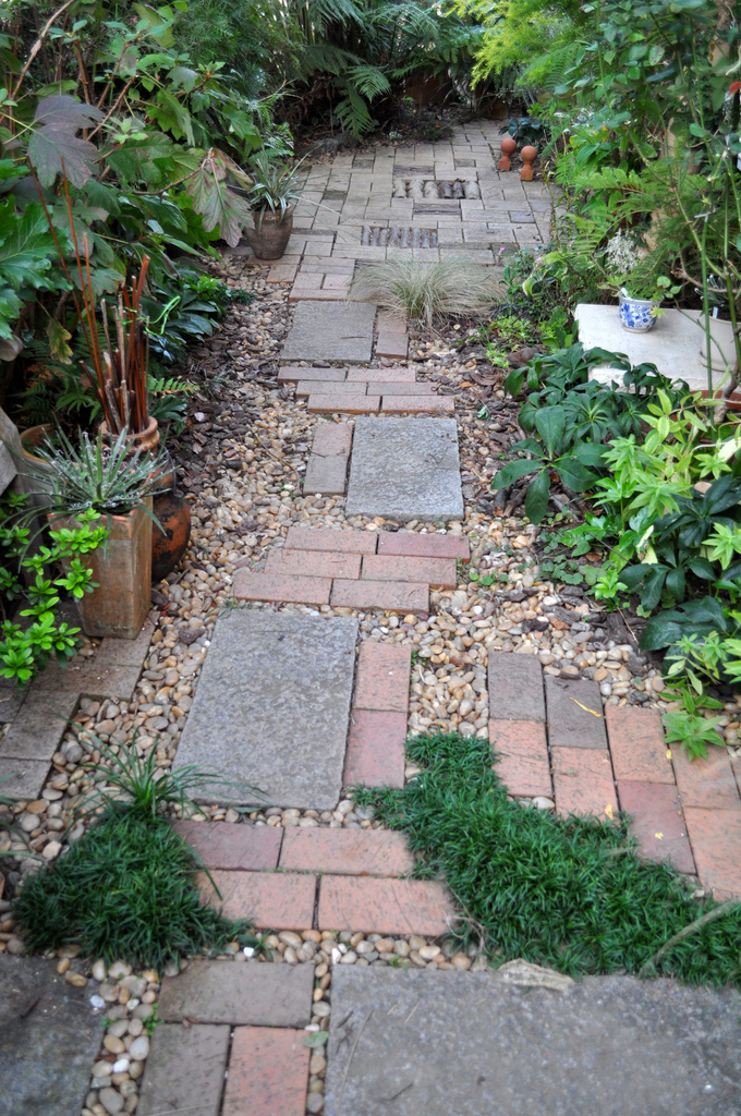 日本の御影石とオーストラリアレンガで和と豪の調和の試みをした庭です。