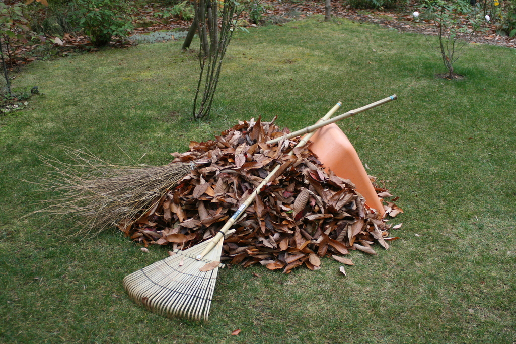 やはり熊手を使っていますか。芝生の上はこれに限りますね。