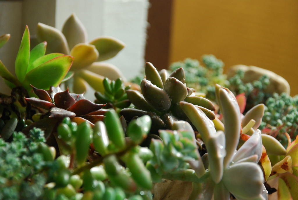 多肉系はわかりませんが、寄せ植えすると一つ一つの個性が引き立ちますね。(^_^;)どれも可愛いですね。