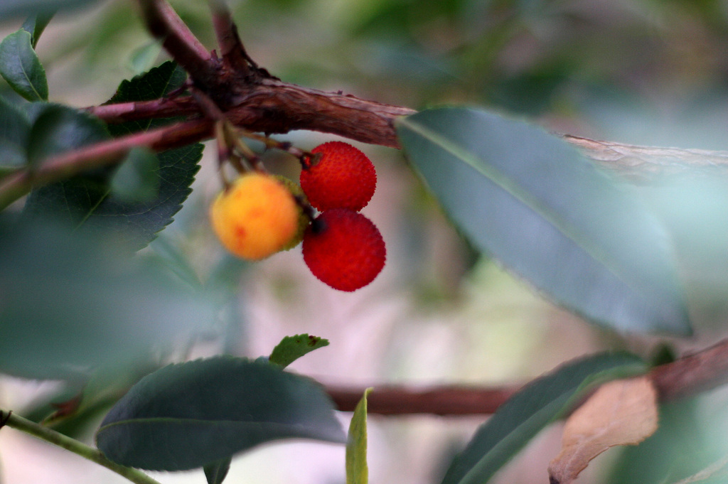 姫イチゴの木の実です。ネットリと甘いのでたくさん育てたい。この木は花と実が同居します。