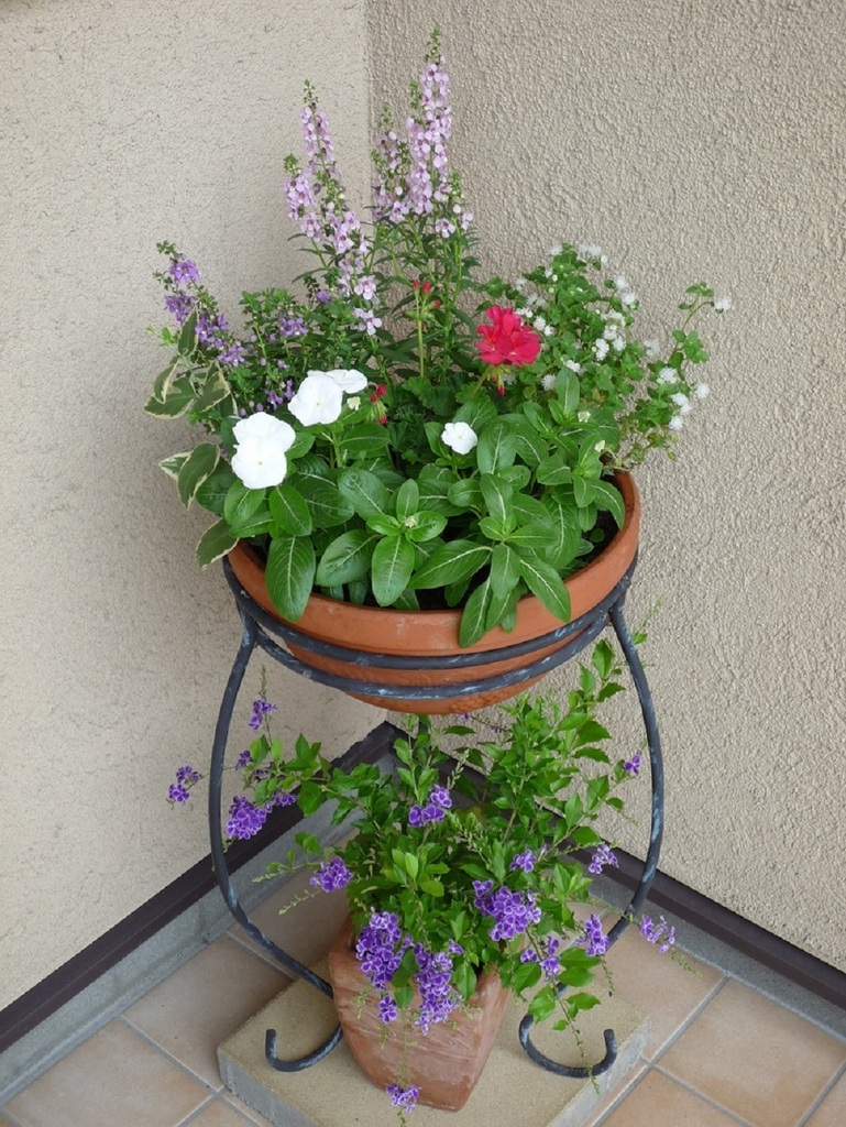 玄関先を飾ってみました~☆花がらを摘んだり水やりをしている時間が いちばんうれしいょね!