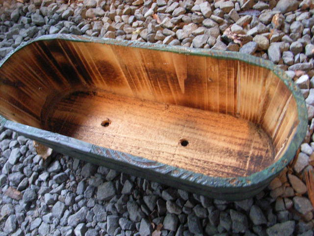 少し焼き目をつけたオーソドックスなウッドポット・・・。外側にステインで着色しました。でも、このまま使うとすぐに腐食するのでっ・・・・・