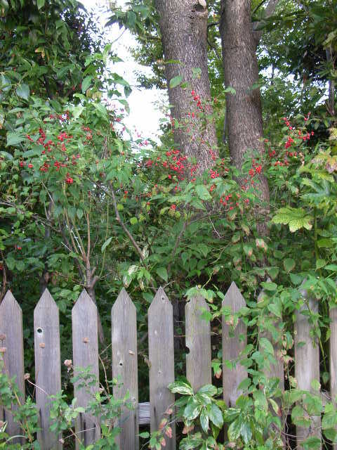 シンプルなウッドフェンスに赤い実の自然な感じがお似合いです。