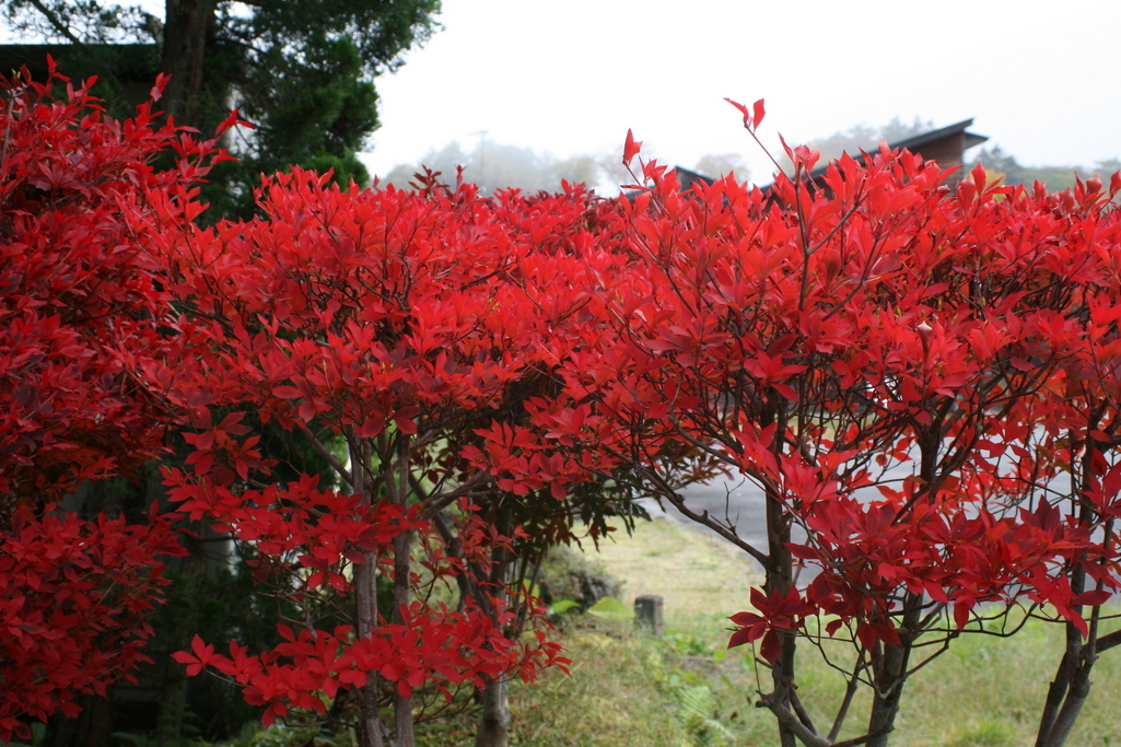 真っ赤に燃えるようなドウダンツツジ。今はあちらこちらで燃え盛っています。