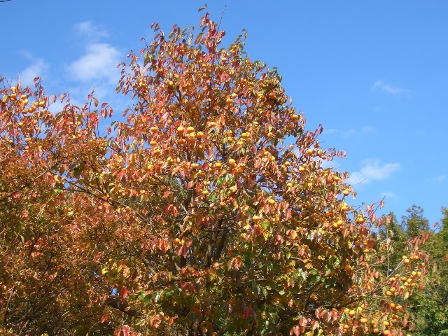 実家の庭にある大きな柿の木。たくさんの実が生っていますが・・・