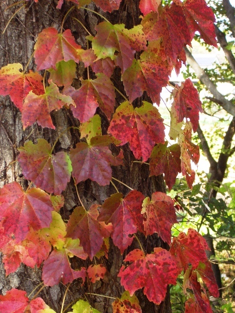 木に絡んだアイビーが綺麗に紅葉していますね。