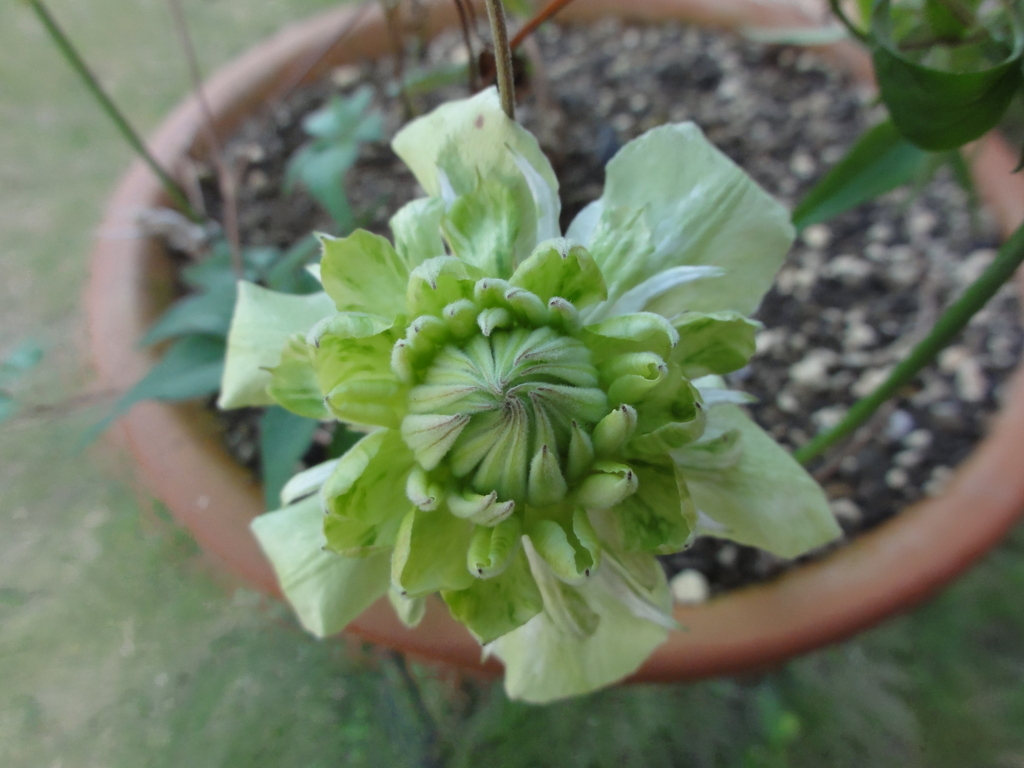 あ、これクレマチスなんですね。迫力の花ですね。ごめんなさい、ふきのとうかと思ってしまいました。