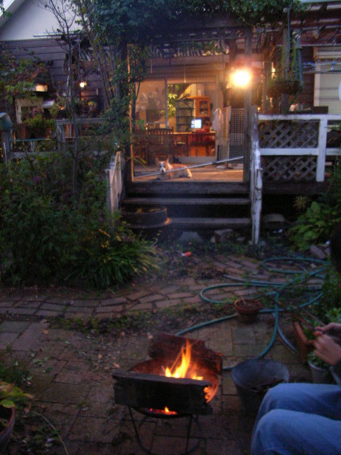 ホースが生活感を出していて、楽しく焚き火している様子が出てますよ。お芋食べましたか?
