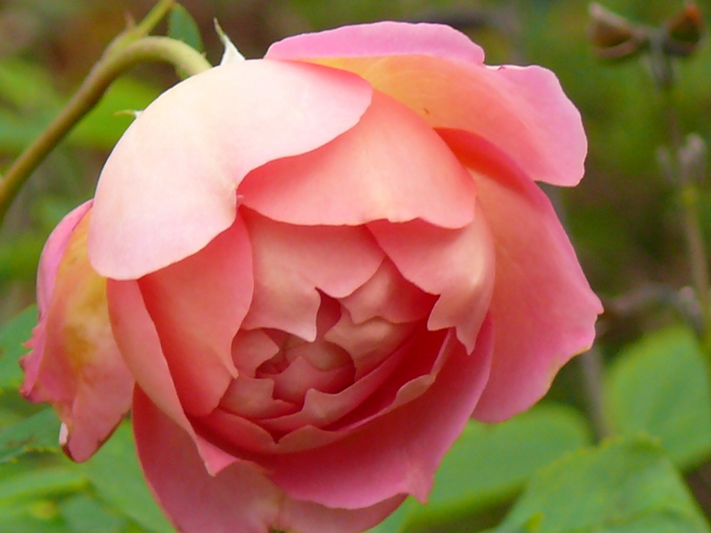 たまりませんね~ この色、一番目に留まるのはこんなピンクとオレンジが混ざった色の薔薇です。それにこの開き具合。この中にたくさんの綺麗な花びらを包み込んでいるのですね。
