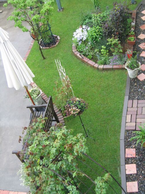 手入れの行き届いた素敵なお庭。テーブルを置いてゆっくりお茶でもいただきたいわ。