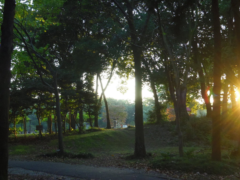 夕暮時、木漏れ日がとっても綺麗ですね