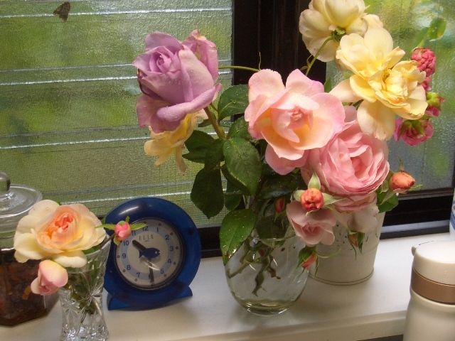 雨の前は、切ったバラを窓辺に飾る幸せ・・・ですね(*^^*)