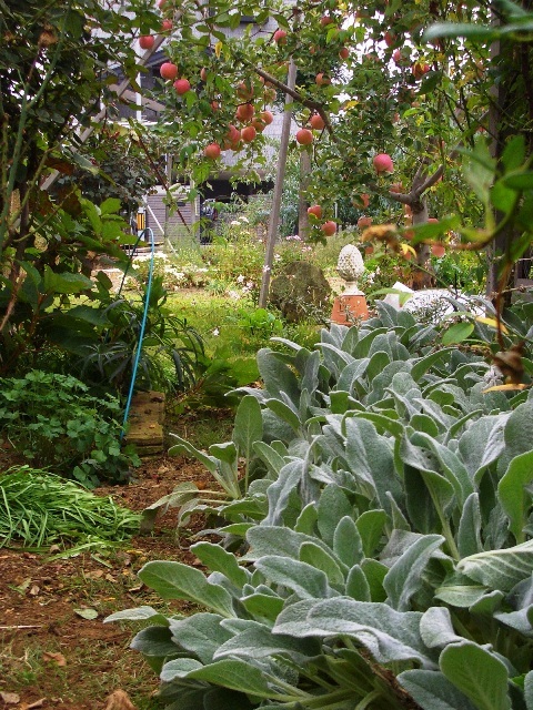 わー!!なんの野菜かと思ったらラムズイヤー!!素敵な小道ですね!リンゴも可愛い!!