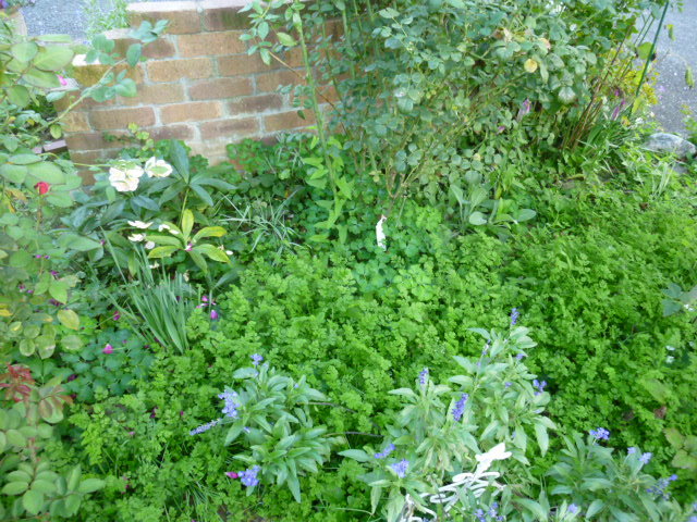 zouさん、いつもコメントありがとうございます。今、オルレアのこぼれ種でいっぱいです。せっかく増えて整理してしまうのももったいないのですがバラが見えなくなってしまうのもかわいそうなのでオルレアを整理します。この中にレンガの道があるんですよ。