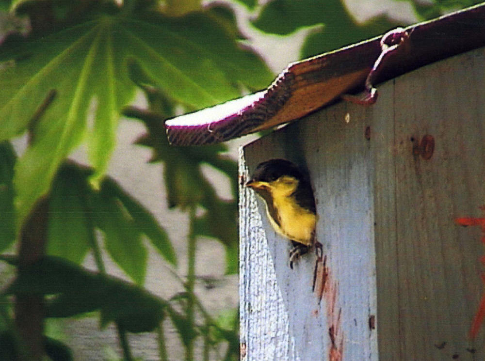 くまのうちの裏庭のずっと前の写真です。キットで組み立てた巣箱にペイント。可愛いヒナが飛び立つ練習の前です。