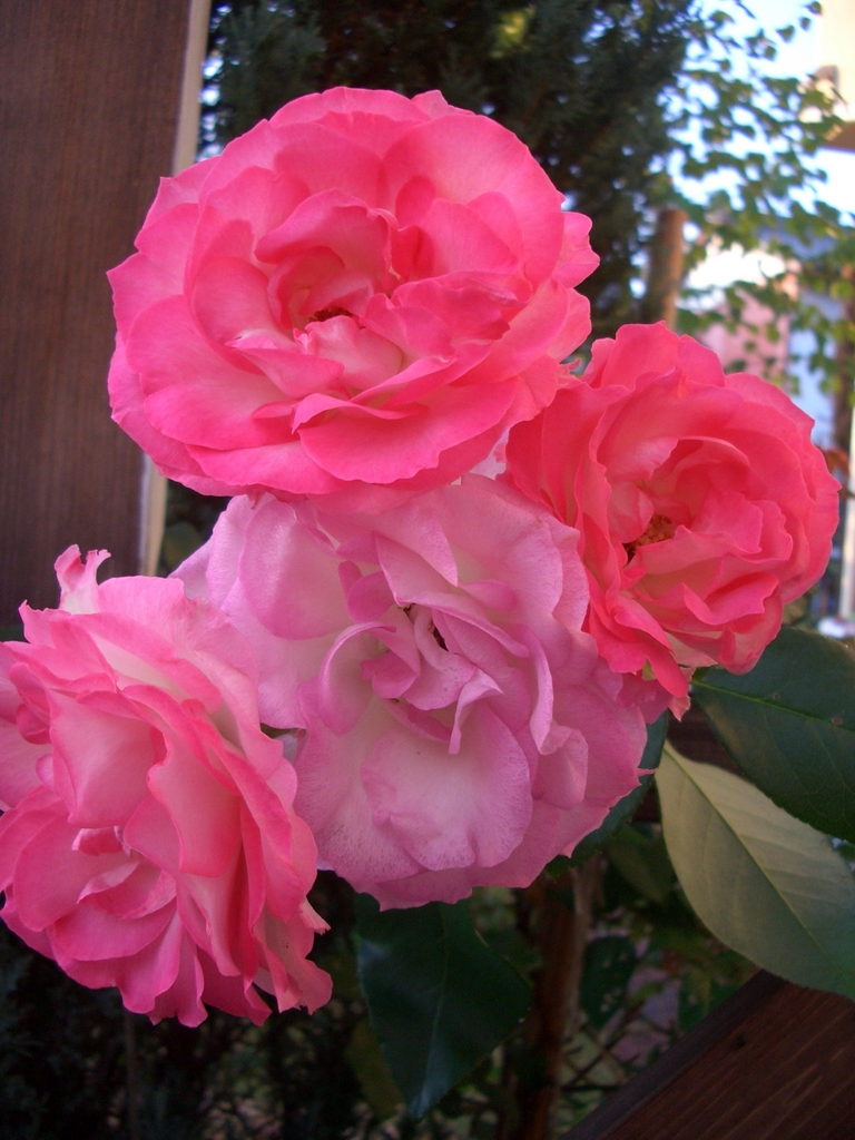 咲いた順番にだんだん色が抜けていくのでしょうか。でもとっても可愛いバラですね。