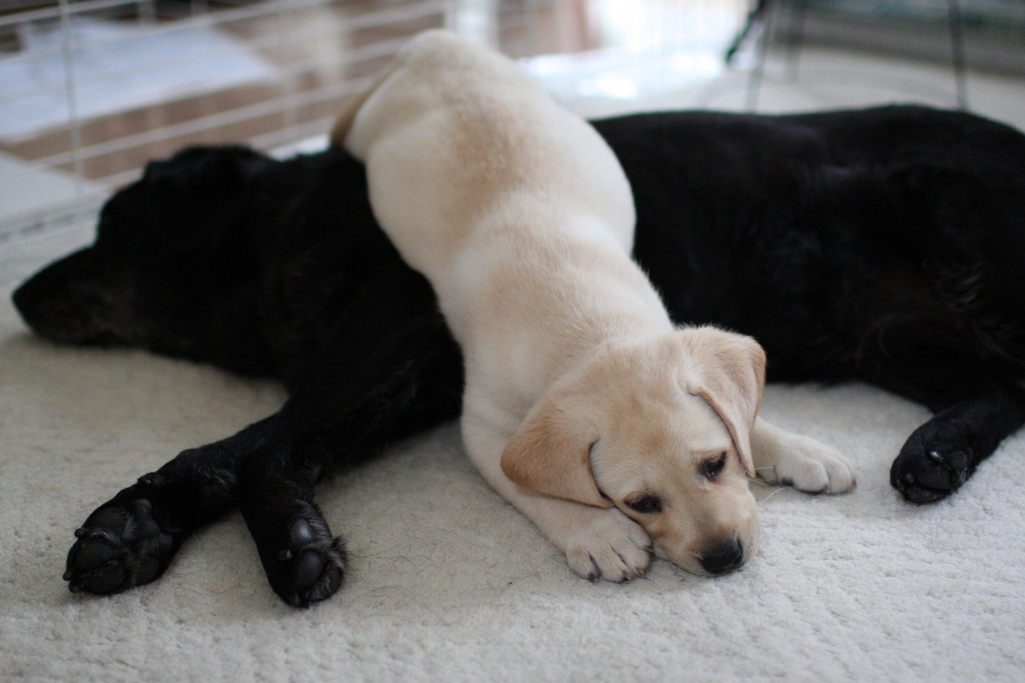 なんともいえず微笑ましい光景です。でも、ずり落ちかけても目は覚めないんですね.....
